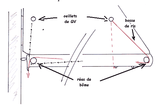 (et si nécessaire, la 3° bande de ris se prend comme