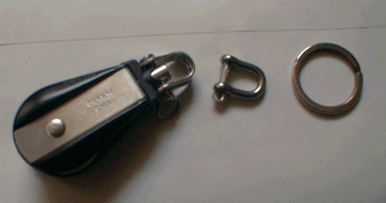 Une petite poulie articulée et un anneau en inox de diamètre