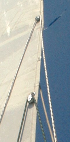 une poulie cousue à la GV, au niveau de l'oeillet de la bordure